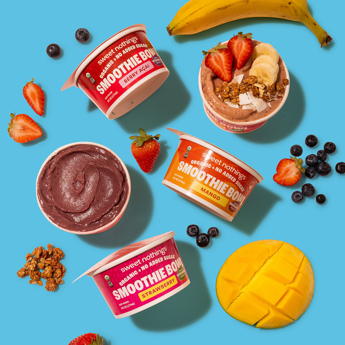 Sweet Nothings Organic Açai Bowls are an easy and delicious way to eat healthy. Made with a delicious mix of organic fruits and veggies, blended just right, then frozen to make them super convenient for your busy life.