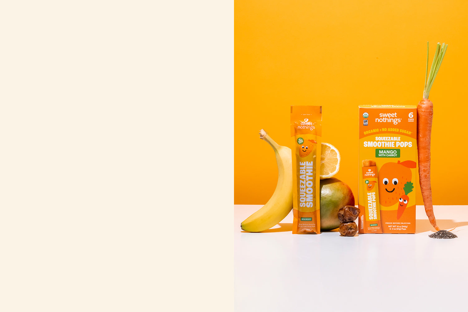 Our Mango Carrot Squeezable Smoothie Pops flavor is filled with only organic fruits, veggies, and seeds and bursting with flavor! These Squeezable Smoothies come in six pre-blended pops of all-natural nutrition with zero added sugar and are made from real, recognizable ingredients.