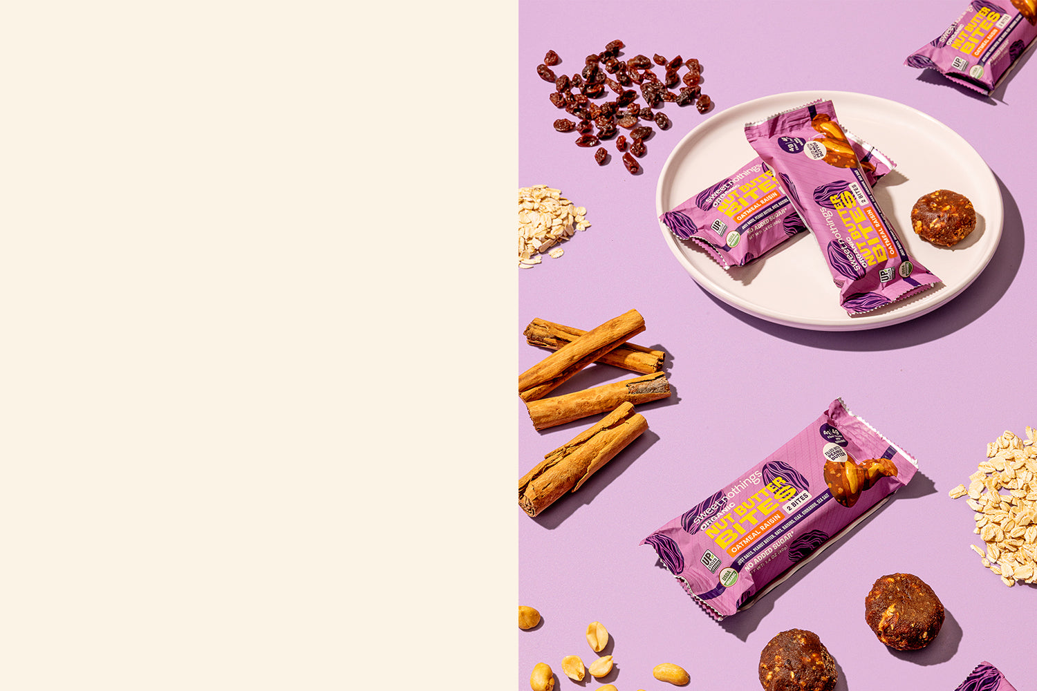 Poppable plant-based peanut buttery bites? Now that sounds like a delicious mouthful! These wholesome and delicious Superfood Nut Butter Bites are made with a chewy outer shell of organic dates, oats, raisins, and flaxseed and filled with an inner center of creamy organic peanut butter. These convenient nut butter filled bites are sure to be your favorite healthy snack for activity filled days. Just like everything we make, these nut butter bites are plant-based and have no added sugar. We only use simple, organic ingredients you can feel good about eating.